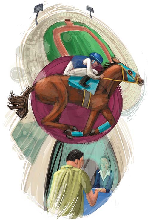 Anoche llovió en el hipódromo, se respira en la cuadra. Antes de que rompa el día las caballerizas despiertan. Sigo el rastro de herraduras sobre el camino de tierra que guía hasta la pista.