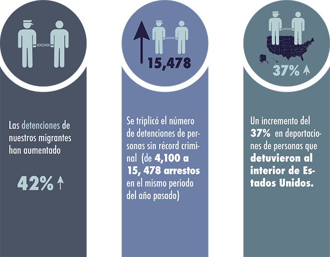 Desde la llegada de Donald Trump a la Casa Blanca, las detenciones de nuestros migrantes han aumentado 42%. Se triplicó el número de arrestos de personas sin récord criminal, basado en el perfil racial (de 4,100 a 15,478). Durante el 2017, cuatro de cada cinco deportaciones, se hicieron a través de procesos acelerados de remoción, saltando el debido proceso y violentando los derechos fundamentales de las personas implicadas. Existe un incremento del 37% en deportaciones de personas detenidas al interior de Estados Unidos (61, 094, en comparación con 44,512), transitando de un perfil fronterizo, que es lo que veíamos mayoritariamente con Obama, a un perfil de personas con mayor arraigo, historia, familia y tiempo en la Unión Americana. No son los bad hombres prometidos por Trump, sino gente trabajadora, productiva y con lazos fuertes por allá como el último informe de Human Rights Watch muestraa través de 43 historias. También existe un incremento del 30.9% en órdenes de salida voluntaria (que se da por presión de la autoridad migratoria en Estados Unidos) con una totalidad de 57,069 en 2017.