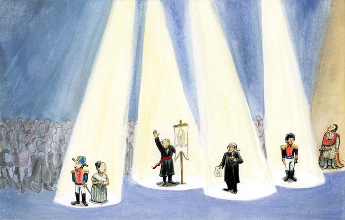 Parece entonces saludable que, al abrir una ventana sobre ese país familiar pero extraño que es el pasado, la historia plantee más preguntas que respuestas, que provoque en lugar de complacer. No son quizá los lugares comunes o las ideas recibidas las que nublan nuestro entendimiento de la Independencia, sino nuestras expectativas, lo que pensamos que la historia debe hacer: “desmitificar” la mentirosa narrativa que nos impusieron en la escuela; reemplazarla por una historia no oficial pero igual de broncínea, moralina y cursi, poblada por personajes de bulto, cuya virtud o vicio no deja lugar para intereses concretos y cambiantes, ni para identificar aquel momento fundacional que nos define como nación y a uno de sus artífices como Padre de la Patria. A los historiadores les toca entonces escribir un relato que dé cuenta de la complejidad del proceso y de sus actores, de la forma de su espacio de maniobra y del peso del contexto y la coyuntura; una historia que se deslinde tanto de la clase de catecismo como de la sesión de psicoanálisis, pero que el lector pueda leer sin aburrirse en el intento.